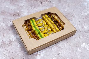 Salah satu jenis makanan yang umum dikonsumsi selama Ramadhan adalah kurma. Anda dapat mengadaptasinya menjadi ide hadiah spesial selama bulan puasa dengan memberikan sekotak kurma kepada pelanggan Anda. Selain lezat dan bergizi, kurma juga menjadi bagian dari sunnah saat berbuka puasa dan sahur. Tentu pelanggan Anda akan merasa senang mendapatkan souvenir seperti ini.
