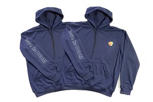 Dengan menambahkan logo brand atau motto perusahaan akan membuatnya tampak semakin elegan. Anda bisa menentukan desain apa yang akan dicetak pada hoodie. Selain itu ada berbagai warna dasar yang bisa Anda pilih untuk disesuaikan dengan desain yang akan dicetak.
