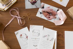 Keempat Anda juga bisa menggunakan gambar atau ilustrasi yang menarik. Gambar atau ilustrasi yang Anda pilih bisa menunjukkan hobi, kesukaan, atau karakteristik dari Anda dan pasangan Anda. Kemudian cari relevansinya dengan pernikahan misalnya bunga, hati, cincin, atau lainnya.