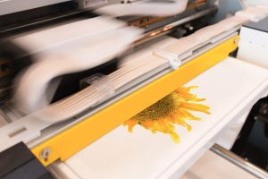 DTG menggunakan printer inkjet khusus untuk mencetak gambar langsung ke kain t-shirt.